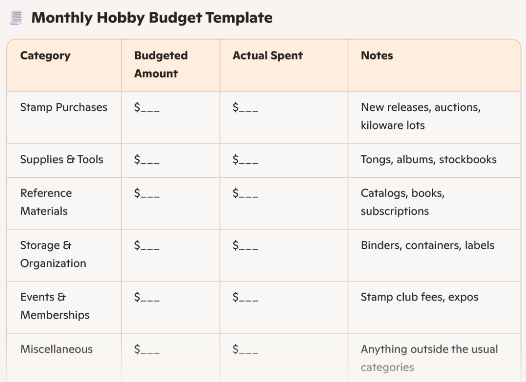 Here is a very simple budget sheet to consider for your stamping hobby –